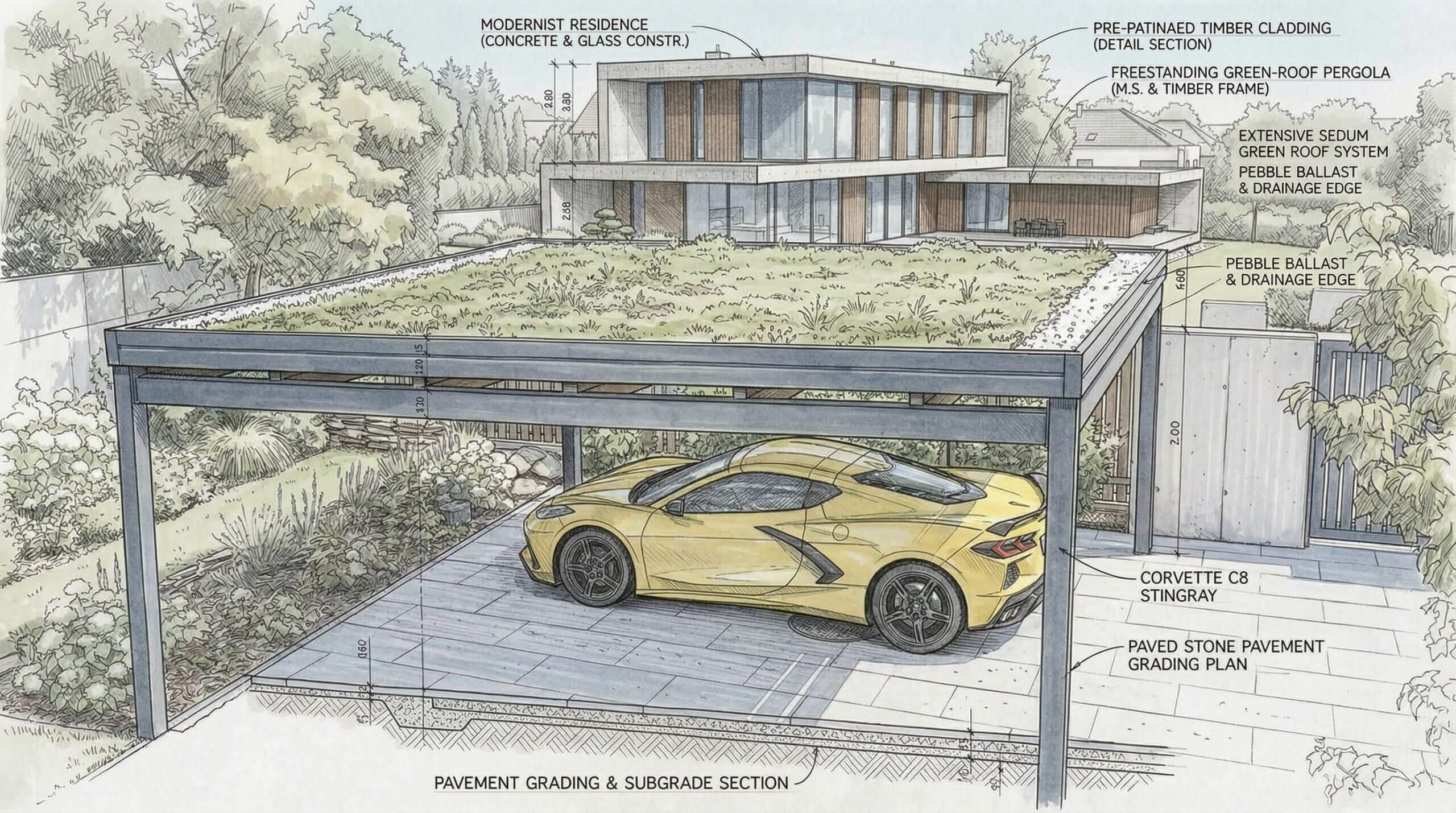 • Carport für zwei Autos